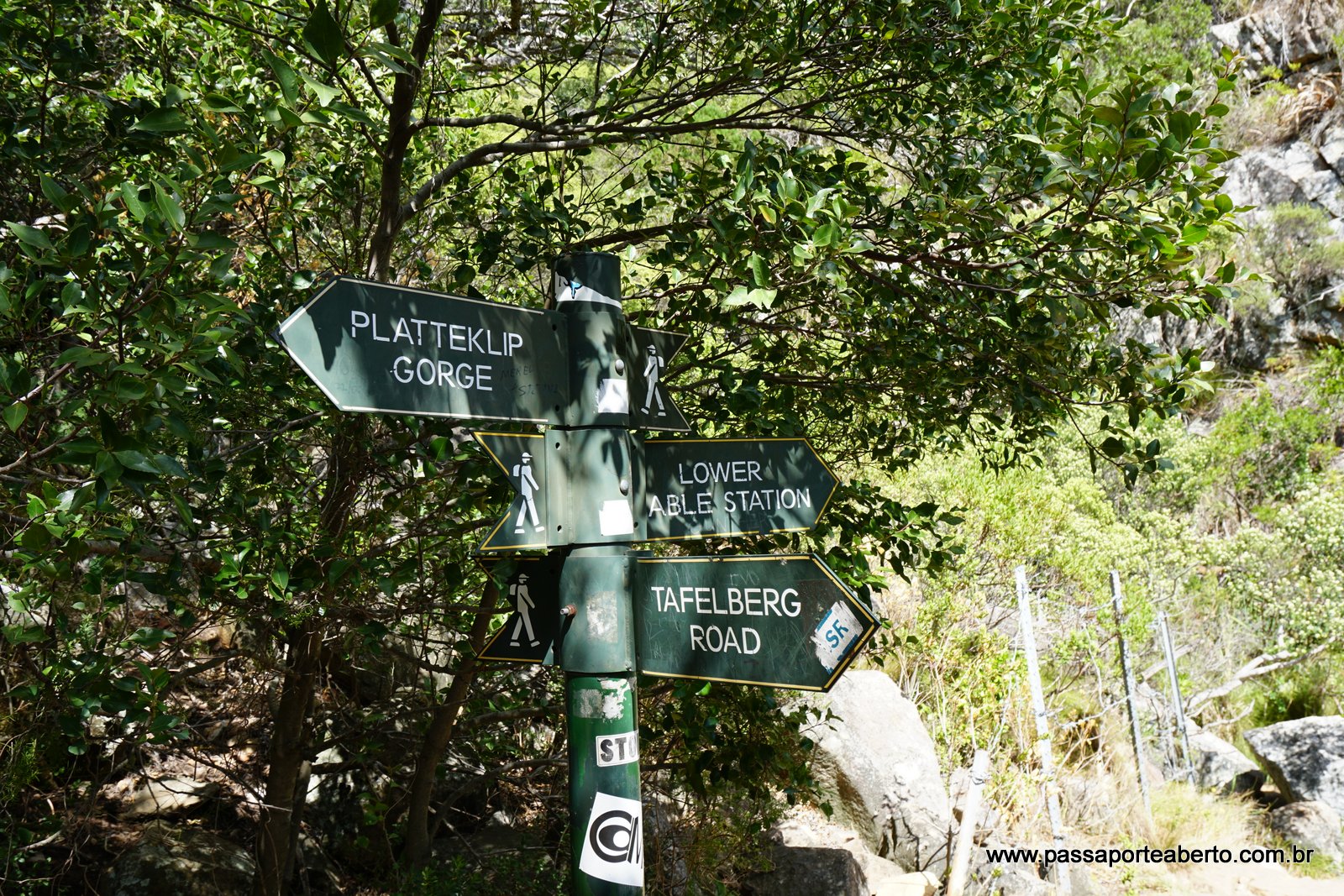 O início da trilha Platteklip Gorge fica na Tafelberg Road, cerca de 1500m depois da estação do bondinho. Você pode estacionar o carro por ali mesmo, perto do início da trilha. Tem uma placa indicando a trilha, e no caminho existem algumas bifurcações, mas todas estão sinalizadas. Chegando no topo, você pode caminhar até a estação do bondinho, onde tem banheiro, lojinhas e restaurantes. Fique um pouco para descansar e apreciar a vista. Dá pra ver as praias (Clifton e Camps Bay), o Lion’s Head e Signal Hill, o Waterfront, o estádio da Copa e grande parte da cidade.