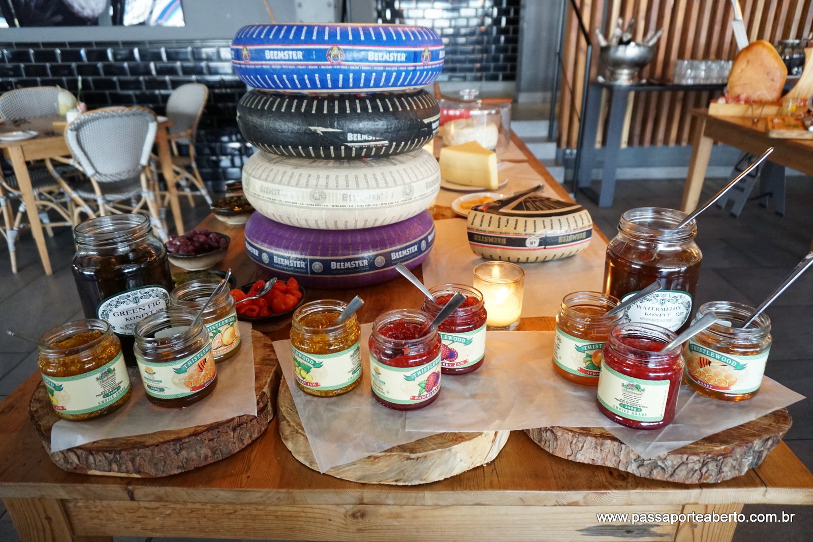 Café da Manhã tinha várias mesas com queijos, pães, geléias e um strudel de maçã maravilhoso! Além disso , todas as opções à la carte!